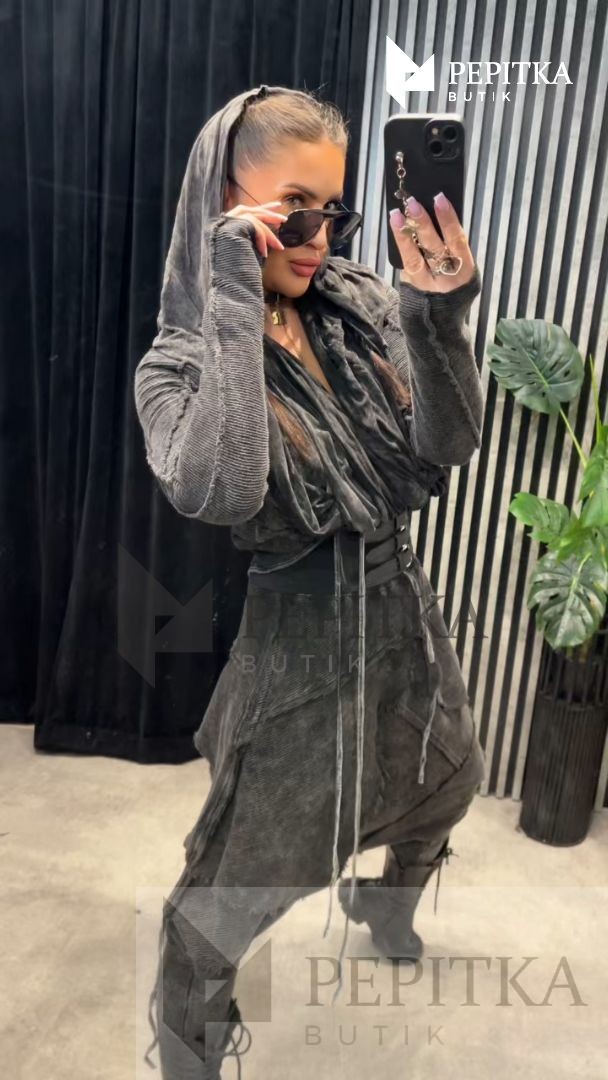 Bluza grafitowa z kapturem i szalem #40