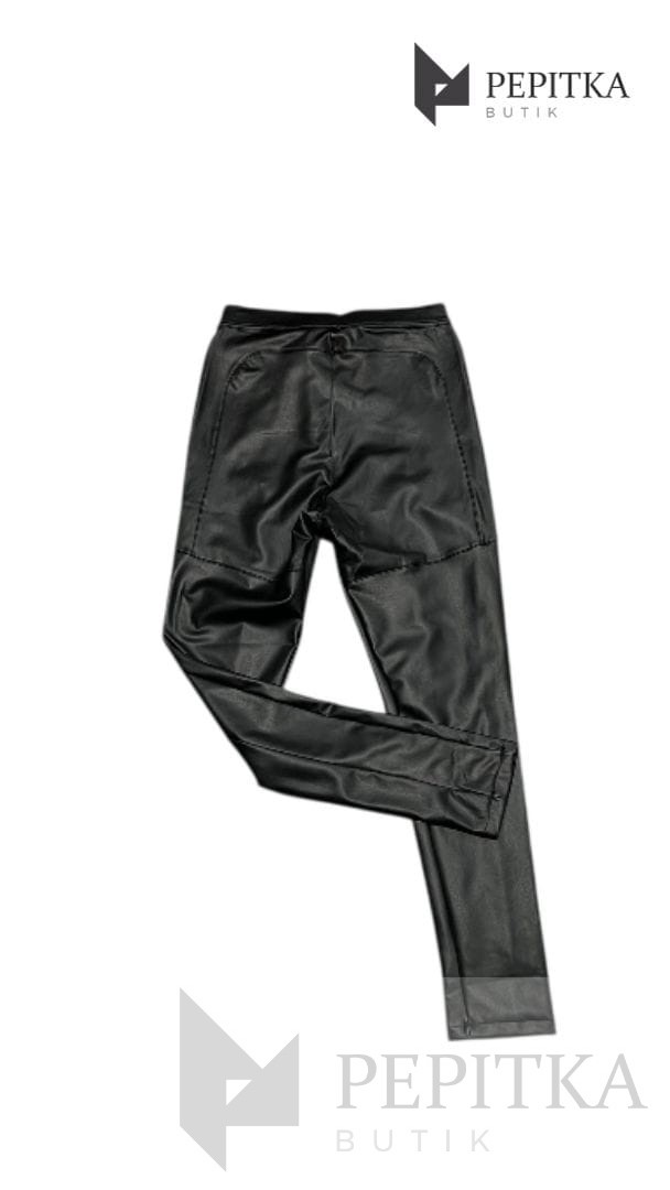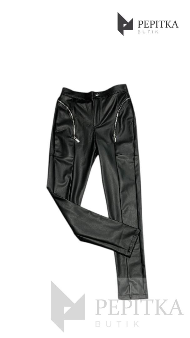 Leginsy czarne z eko-skóry z zamkami #106